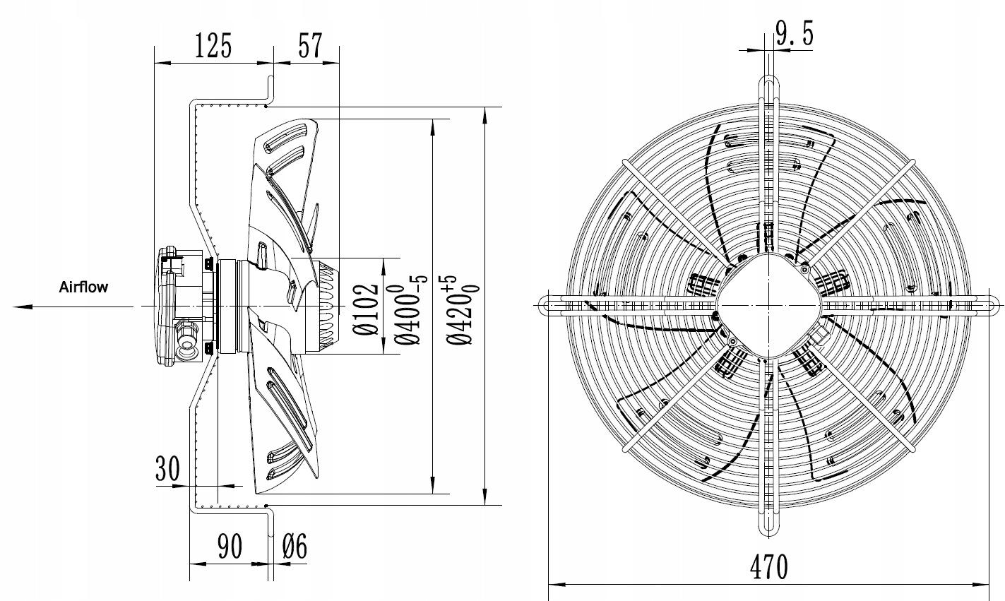 Der Ventilator findet breite Anwendung in der Industrie, unter anderem bei Kühlern, Verdampfern, Kondensatoren in Kältesystemen und vielen anderen Geräten.