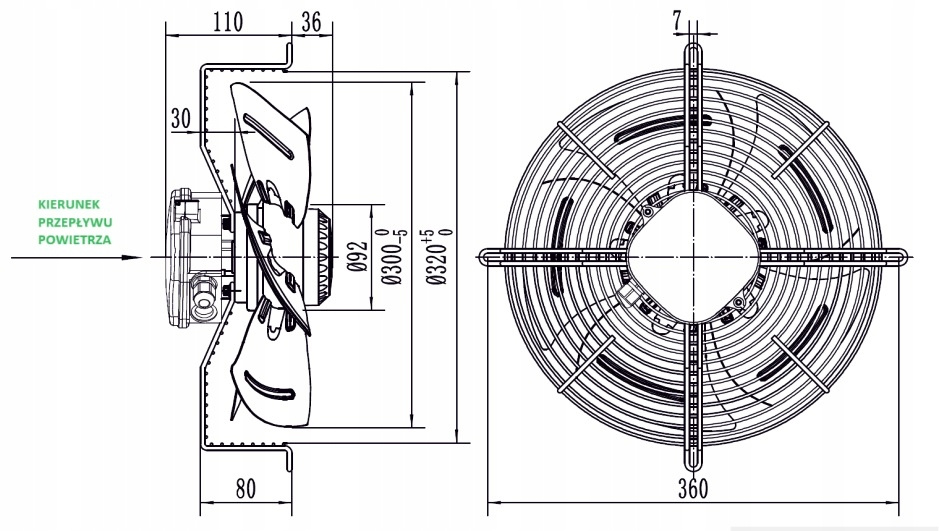 Axialer Druckventilator 300 mm YWF4E-300B-92/35-G