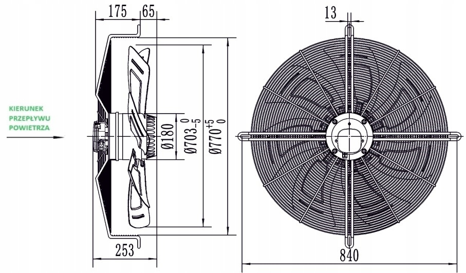 Die YWF-Ventilatoren mit den Durchmessern 710 mm und 800 mm sind mit Drehstrommotoren ausgestattet.