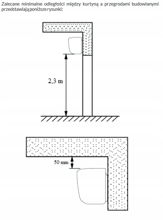 Die maximale Höhe, in der der Luftschleier montiert werden kann, beträgt 3 m, während die empfohlene Höhe 2,3 m beträgt. Der Mindestabstand zur Decke sollte jedoch 5 cm betragen.