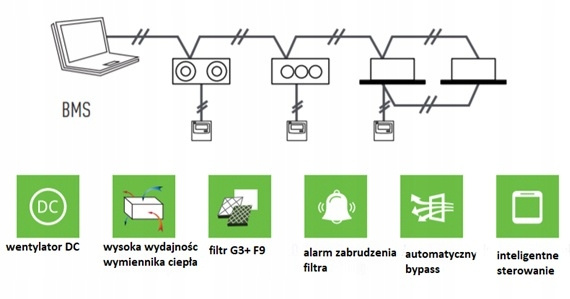 - Intelligentes Steuerungssystem verfügbar, optionale CO₂- und Feuchtigkeitssteuerungsfunktionen, externe Steuerung und BMS-Steuerung