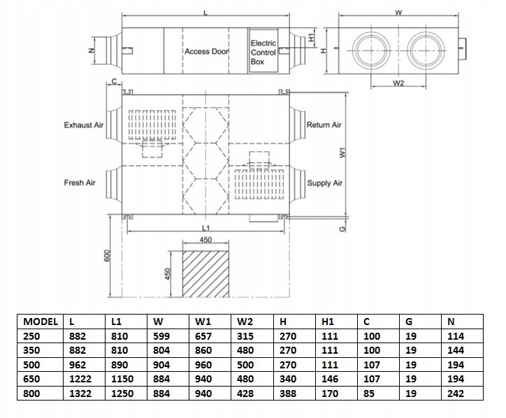 Luftüngsgerät mit Enthalpie-Wärmetauscher 650 m3/h