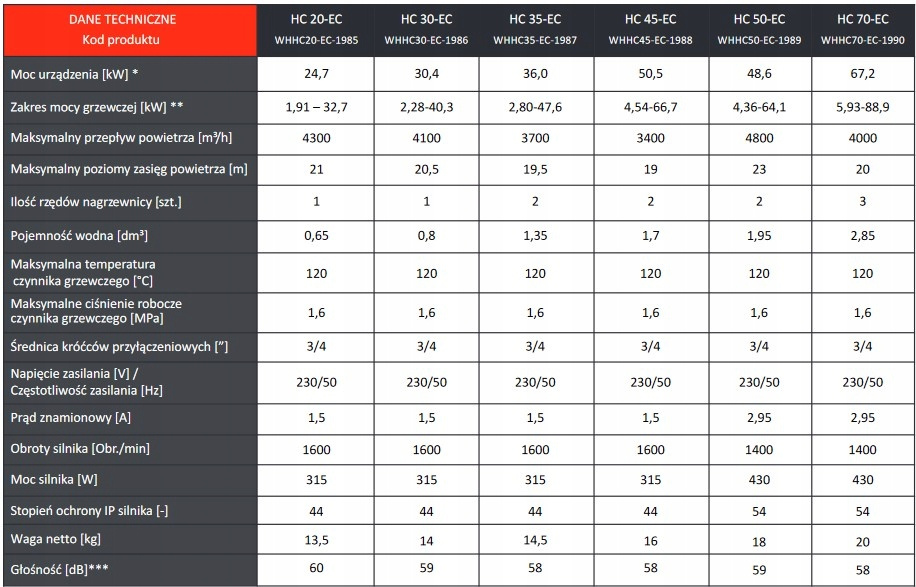 - Effizienter Kupfer-Aluminium-Wärmetauscher sorgt für Wärme und Komfort - 1-, 2- und 3-reihige Wärmetauscher im Leistungsbereich 1,55 - 91,5 kW erhältlich.