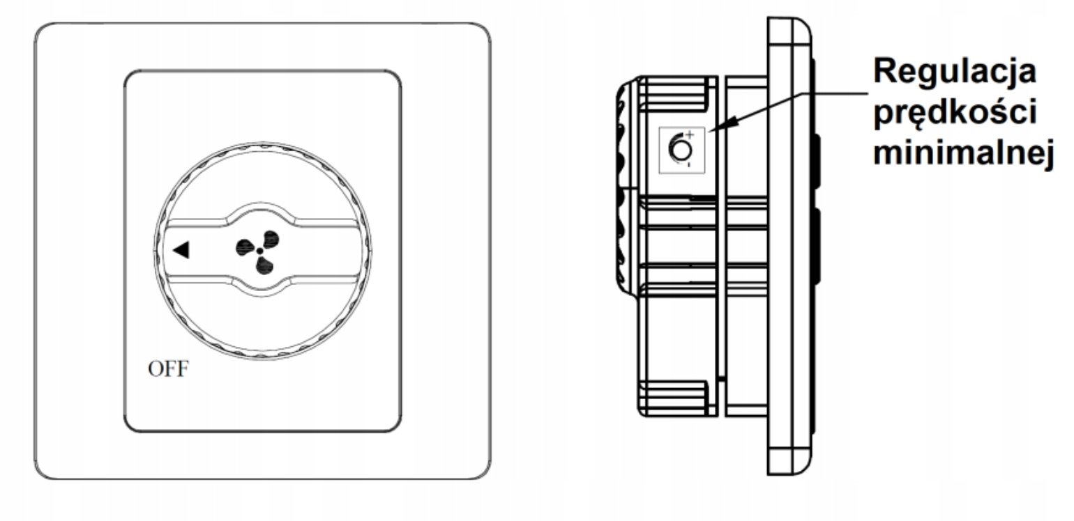 Durch Drehen des Minimaldrehzahlreglers, der sich an der Seite des Geräts befindet, kann die minimale Drehzahl des Ventilators eingestellt werden. Drehung nach rechts verringert die minimale Drehzahl, während Drehung nach links sie erhöht.